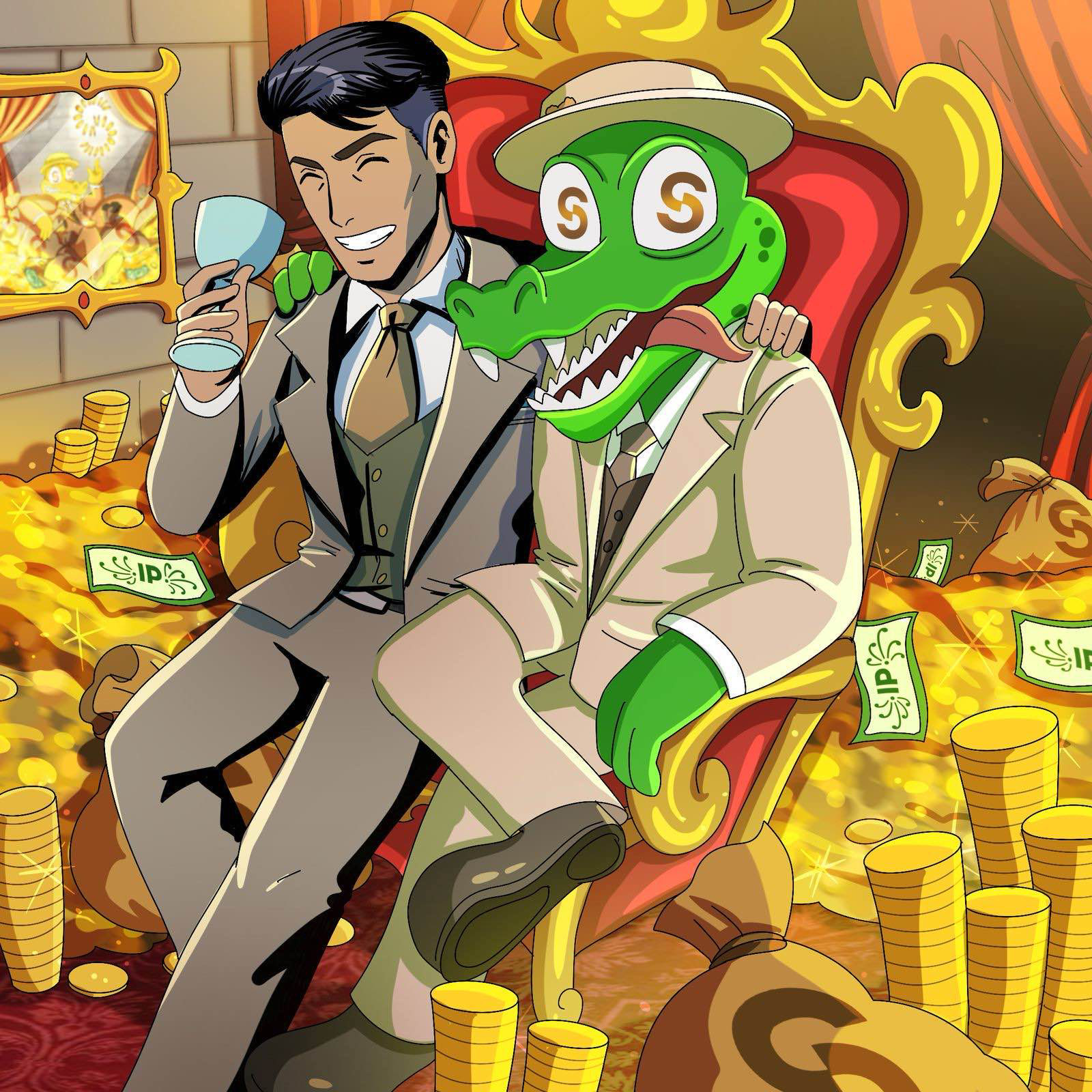 coins, velvet collars, and a throne made of failed rugpull tokens. Now